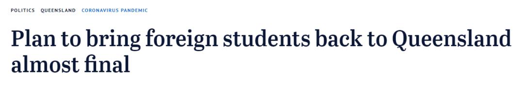 “昆士兰大学会与州政府合作,支持我们的学生在抵达时进行隔离。通过使这些学生能够以可控的方式返回,教育、住房和旅游业将得到复苏。”