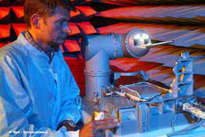 在这种情况下科研人员还会进行测试,观察通过力反馈控制杆可以多好的操纵机器人手臂。“这样在地面的操纵者就可以感受到在太空中的机器人手臂对周边环境所施加的力。” 朗特策特尔如是说。为了能一直观察“Rokviss”机器人手臂,科研人员还安装了两台摄像机,它们提供了实时图像,让这一工作小组成员可以从视觉上确认,他们的项目仍在正常工作并处于良好的状态。